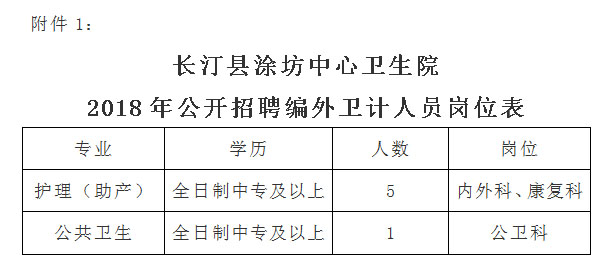 附件1:2018年長(zhǎng)汀縣涂坊中心衛(wèi)生院公開招聘編外衛(wèi)計(jì)人員崗位表