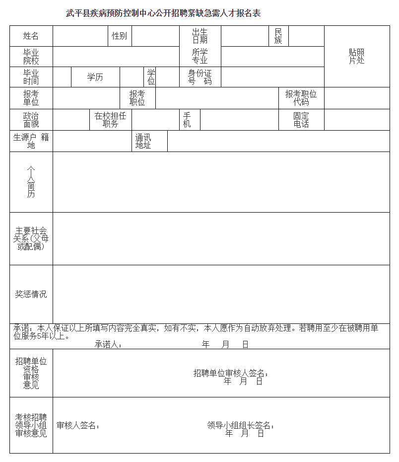 附件:1.武平縣疾病預(yù)防控制中心公開招聘緊缺急需人才報(bào)名表