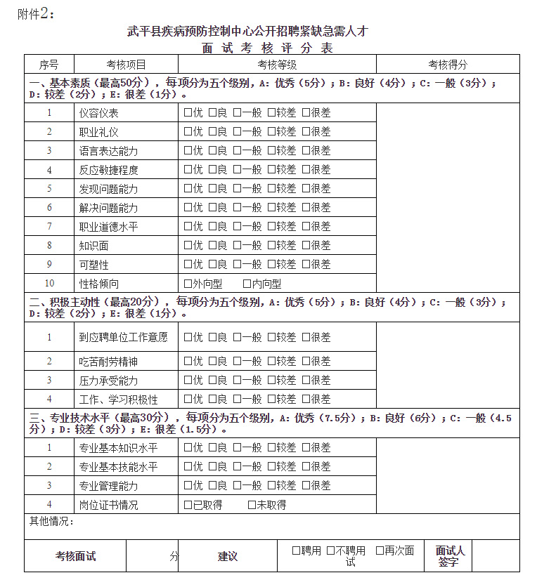 2.武平縣疾病預(yù)防控制中心公開招聘緊缺急需人才面試考核評分表