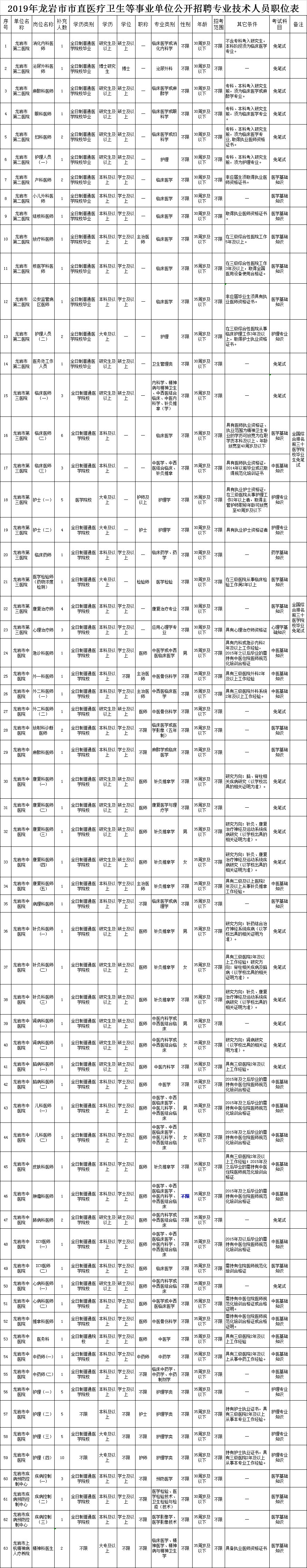 1.2019年龍巖市市直醫(yī)療衛(wèi)生等事業(yè)單位公開(kāi)招聘專業(yè)技術(shù)人員職位表
