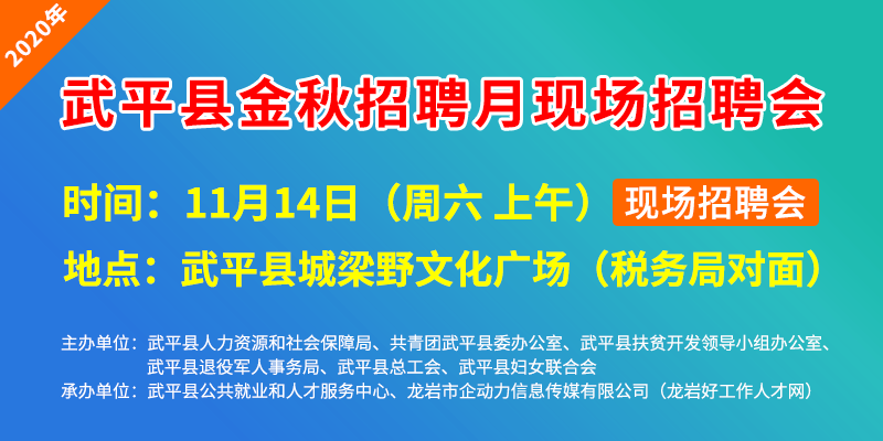 承辦單位:武平縣公共就業(yè)和人才服務(wù)中心、龍巖市企動(dòng)力信息傳媒有限公司(龍巖好工作人才網(wǎng))