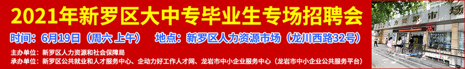 承辦單位:龍巖市新羅區(qū)公共就業(yè)和人才服務(wù)中心、龍巖市企動(dòng)力信息傳媒有限公司(龍巖好工作人才網(wǎng))、龍巖市中小企業(yè)服務(wù)中心(龍巖市中小企業(yè)公共服務(wù)平臺(tái))