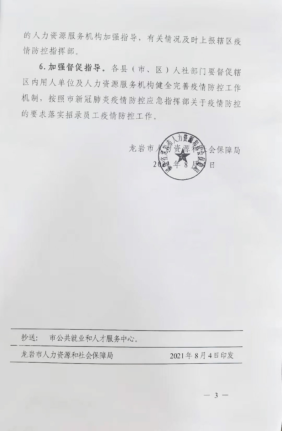 您當(dāng)前的位置:首頁 > 新聞動態(tài) > 龍巖市人力資源和社會保障局關(guān)于做好當(dāng)前企業(yè)招聘用工疫情防控工作的通知