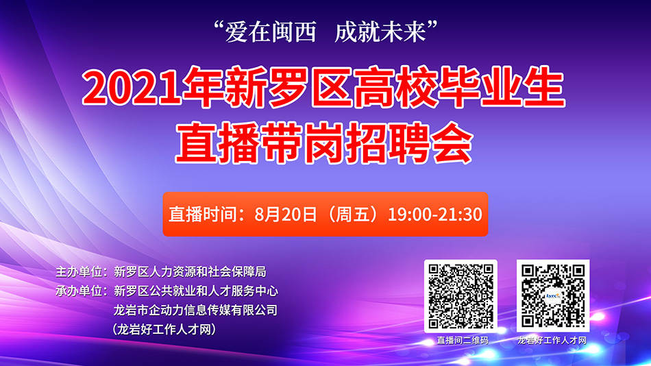 • 【8月20日直播招聘會(huì)】2021年新羅區(qū)高校畢業(yè)生直播帶崗招聘會(huì)