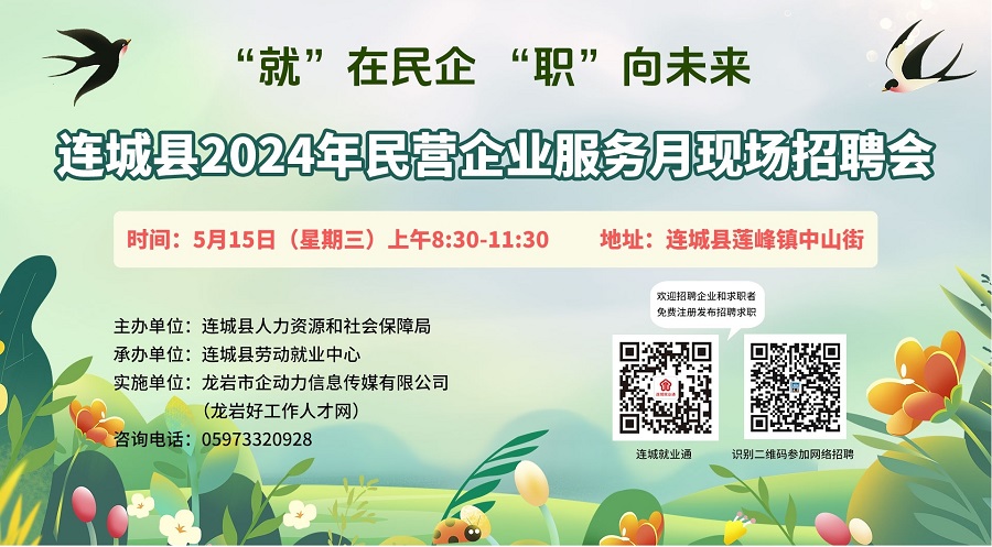 【5月29日直播】龍巖市2024年“千校萬(wàn)崗·筑夢(mèng)基層”行動(dòng)暨青年人才專場(chǎng)直播帶崗招聘會(huì)