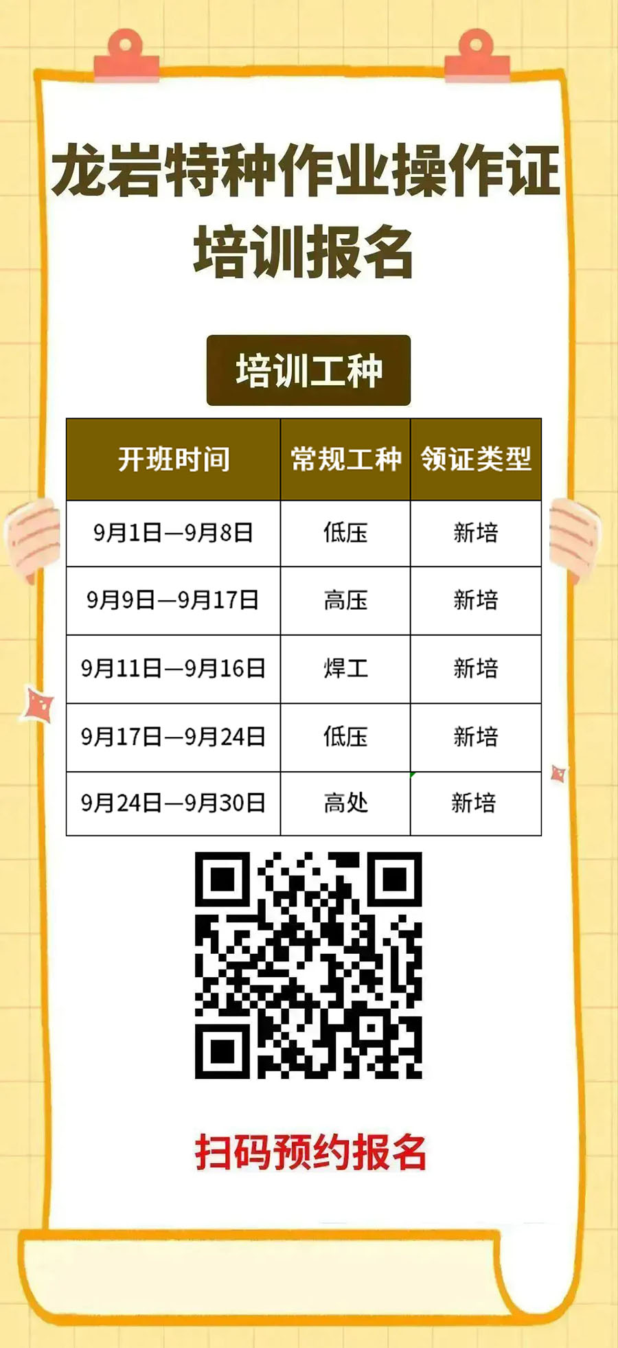 高處作業(yè)新培訓(xùn)開班時間:9月24日-9月30日