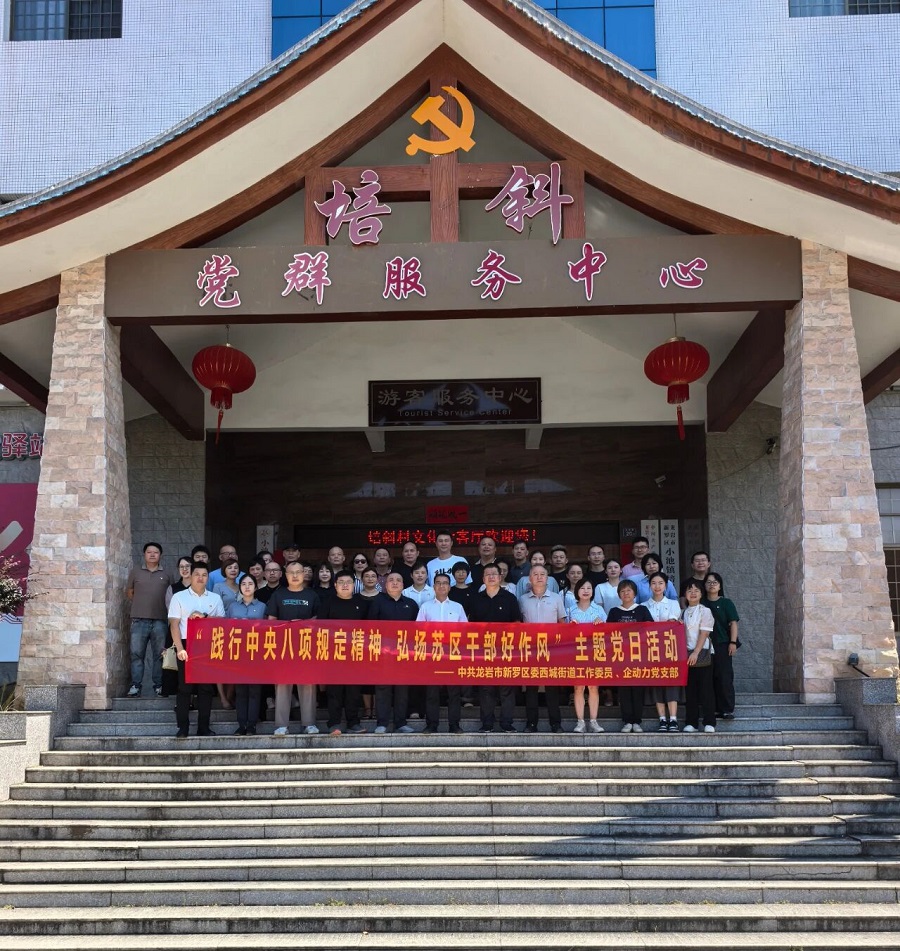 為深入學(xué)習(xí)貫徹中央八項(xiàng)規(guī)定及其實(shí)施細(xì)則精神,持續(xù)鞏固拓展作風(fēng)建設(shè)成效,教育引導(dǎo)黨員干部大力傳承紅色基因、賡續(xù)紅色血脈、汲取奮進(jìn)力量。9月15日,西城街道黨委精心組織,引領(lǐng)企動(dòng)力信息傳媒黨支部聯(lián)合開(kāi)展了“踐行中央八項(xiàng)規(guī)定精神 弘揚(yáng)蘇區(qū)干部好作風(fēng)”主題黨日活動(dòng),西城街道全體黨員及企動(dòng)力黨支部全體黨員齊聚一堂,共同開(kāi)啟了一次意義非凡的黨建之旅。