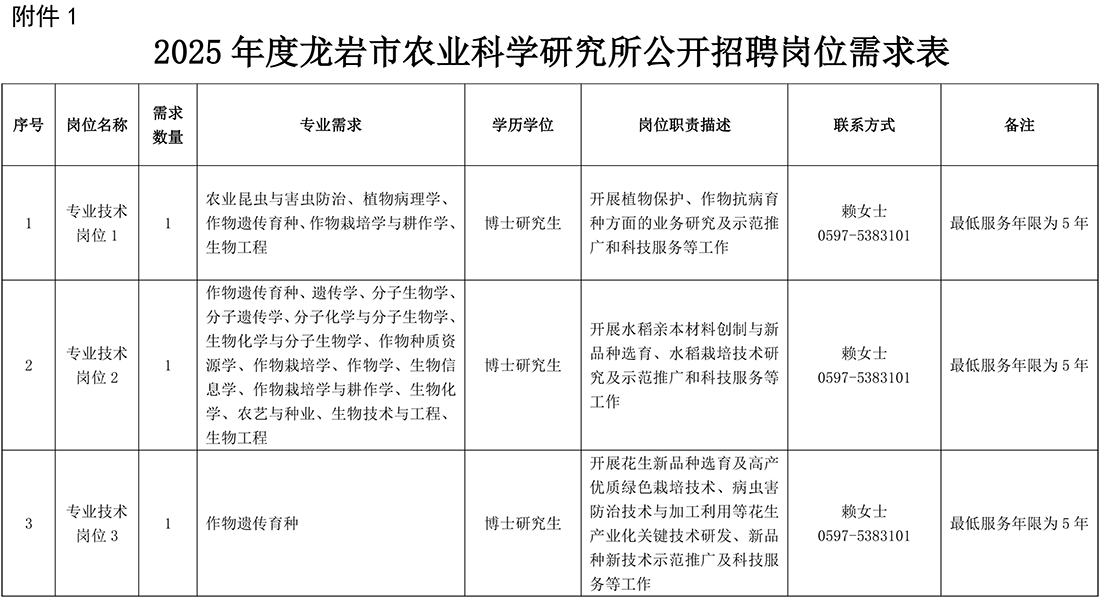 (1)《2025年龍巖市農(nóng)業(yè)科學(xué)研究所公開(kāi)招聘工作人員報(bào)名表》;