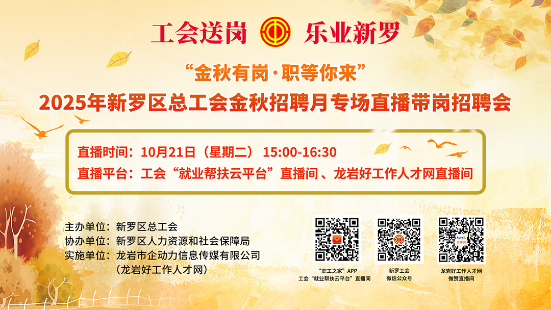活動平臺:工會“就業(yè)幫扶云平臺”直播間 、龍巖好工作人才網(wǎng)微贊直播間