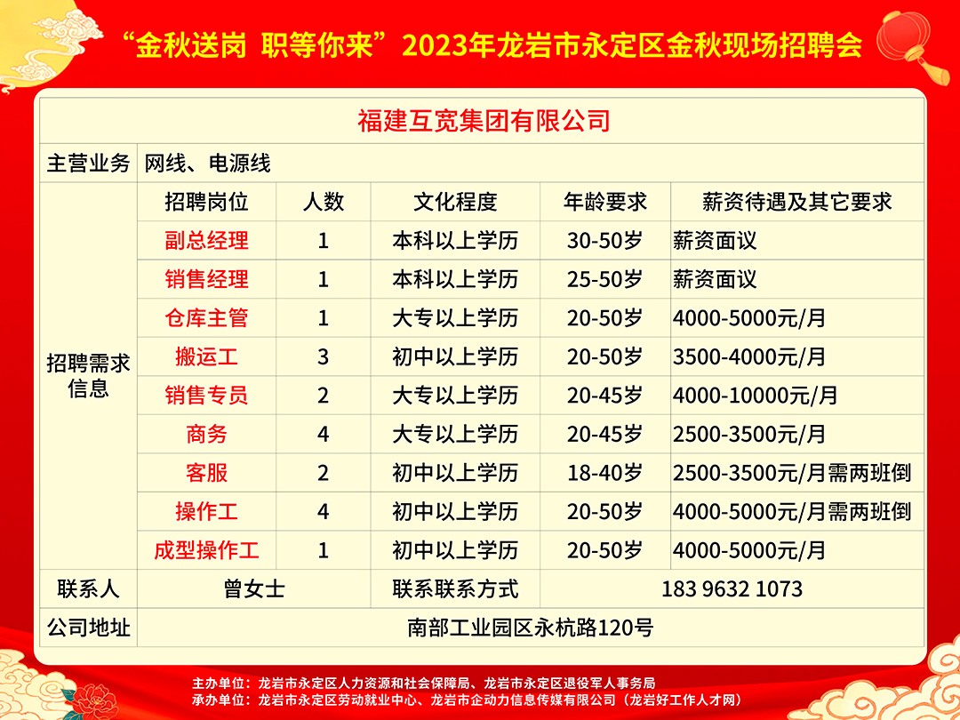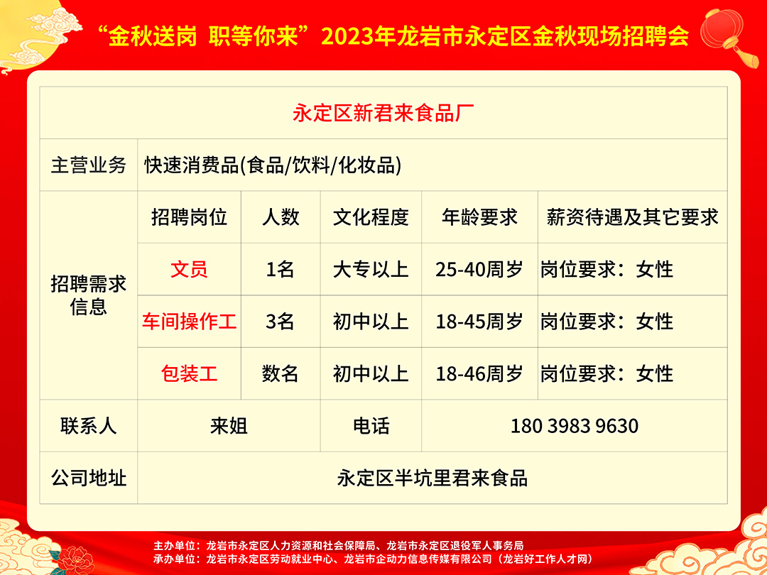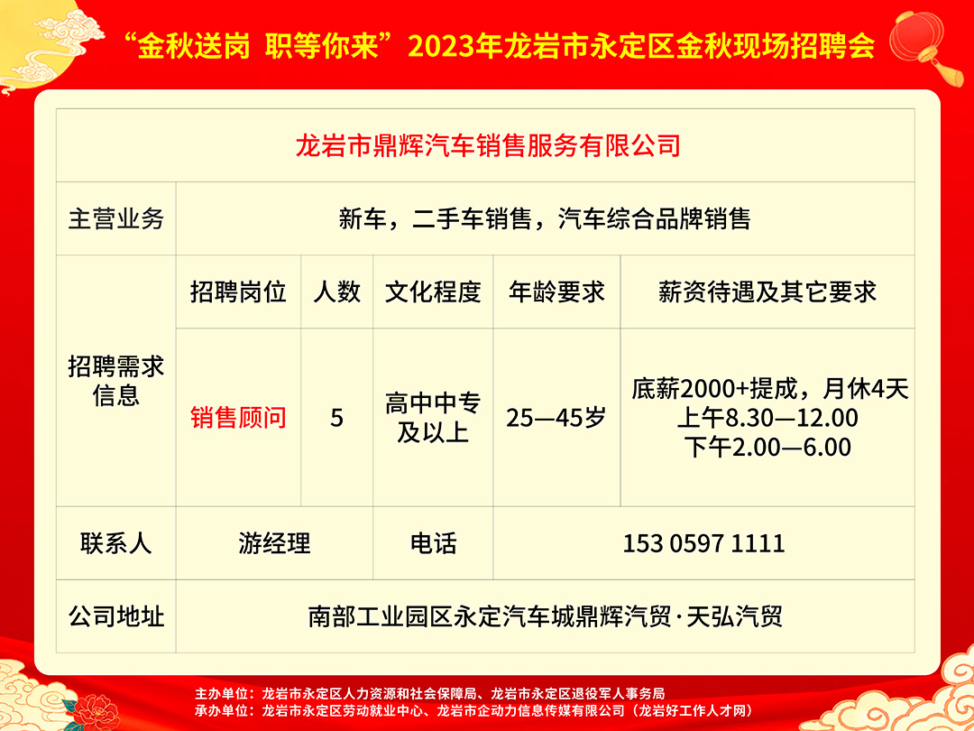 承辦單位: 龍巖市永定區(qū)勞動(dòng)就業(yè)中心 龍巖市企動(dòng)力信息傳媒有限公司