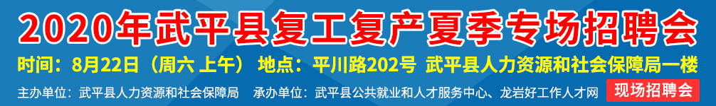 一、招聘會(huì)主題:2020年武平縣復(fù)工復(fù)產(chǎn)夏季專場(chǎng)招聘會(huì)