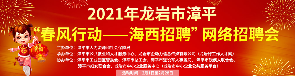 承辦單位: 漳平市公共就業(yè)和人才服務(wù)中心、龍巖市企動(dòng)力信息傳媒有限公司(龍巖好工作人才網(wǎng))