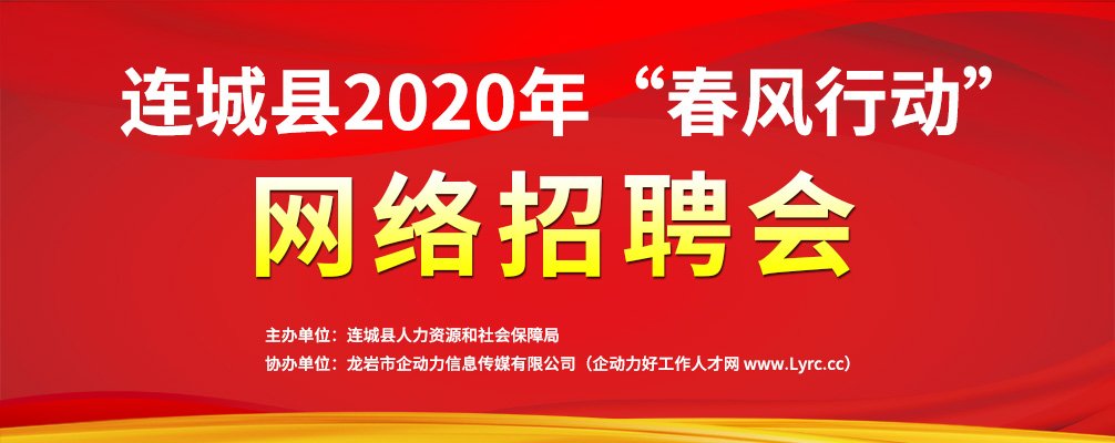 舉辦單位:連城縣人力資源和社會保障局 協(xié)辦單位:龍巖市企動力信息傳媒有限公司(企動力好工作人才網(wǎng) www.onlinepeopleservices.com)