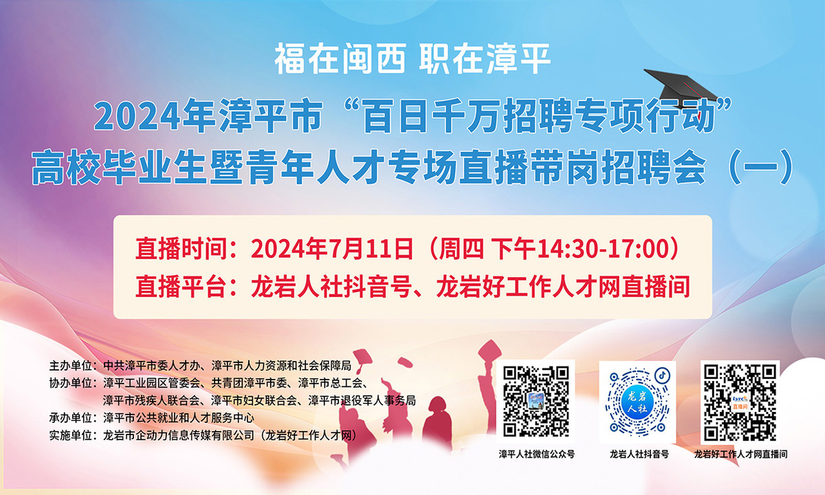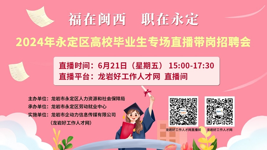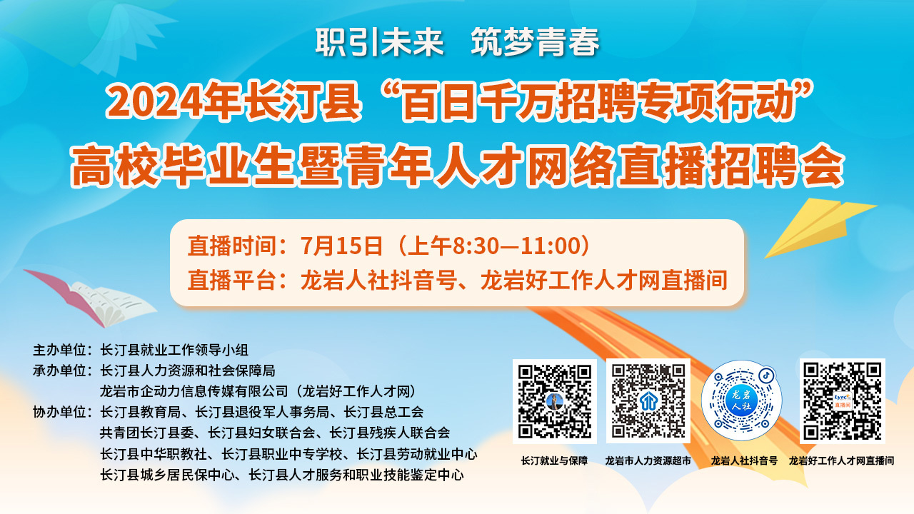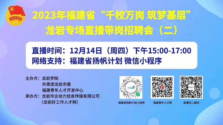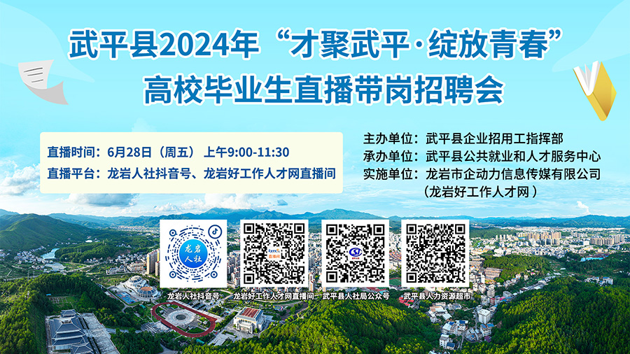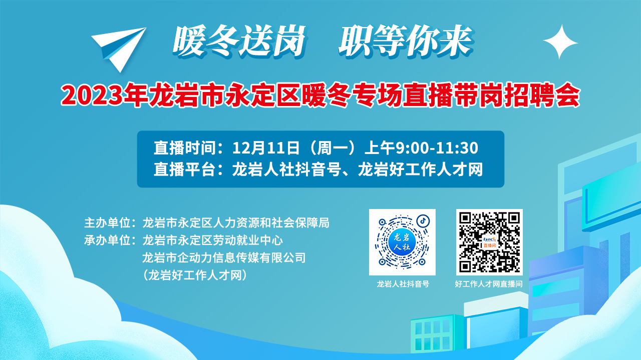 舉辦地點(diǎn):龍巖人社抖音號(hào)、龍巖好工作人才網(wǎng)直播間