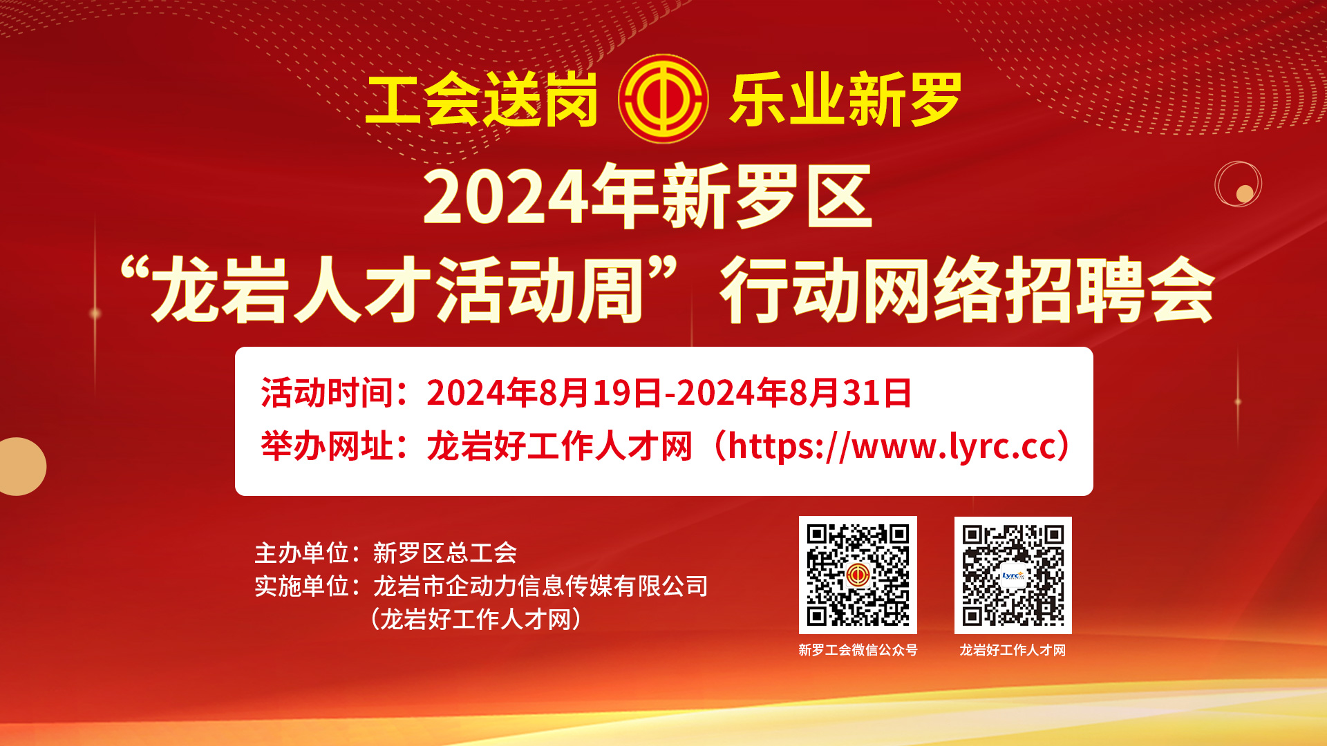 舉辦單位:新羅區(qū)人力資源和社會保障局、新羅區(qū)總工會