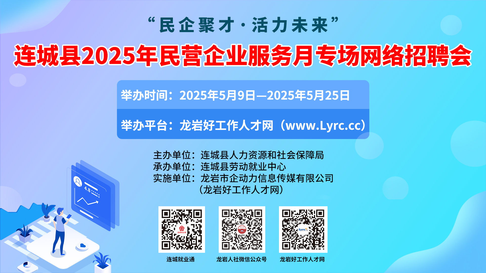 本網(wǎng)站經(jīng)福建省龍巖市人社局批準(zhǔn),為正規(guī)合法人才網(wǎng)站,人力資源服務(wù)許可證:(閩)人服證字〔2019〕第0801000113號(hào)