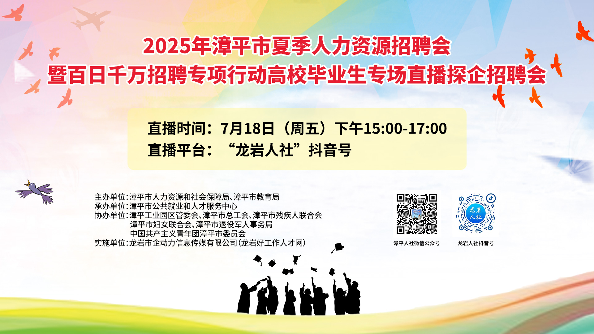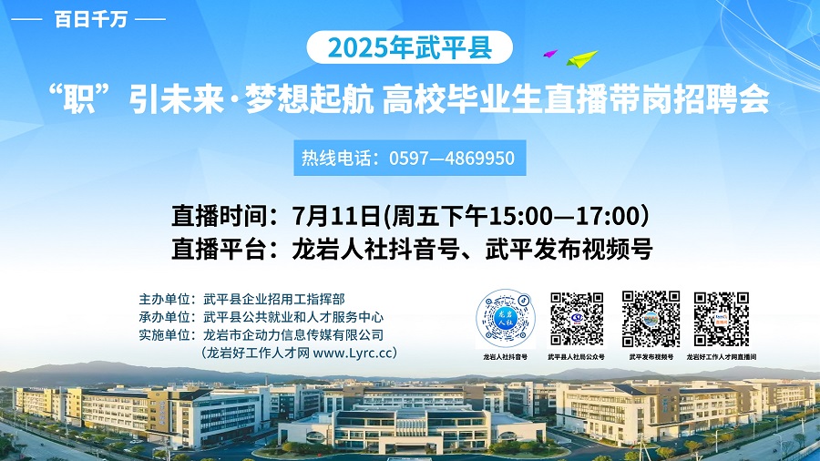 舉辦地點(diǎn):龍巖人社抖音號(hào)/龍巖好工作人才網(wǎng)直播間