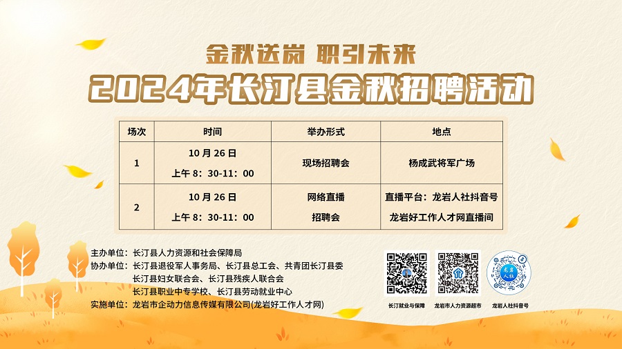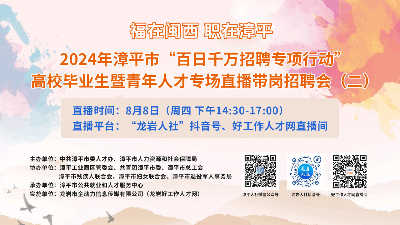 舉辦地點(diǎn):龍巖人社抖音號(hào)、龍巖好工作人才網(wǎng)直播間