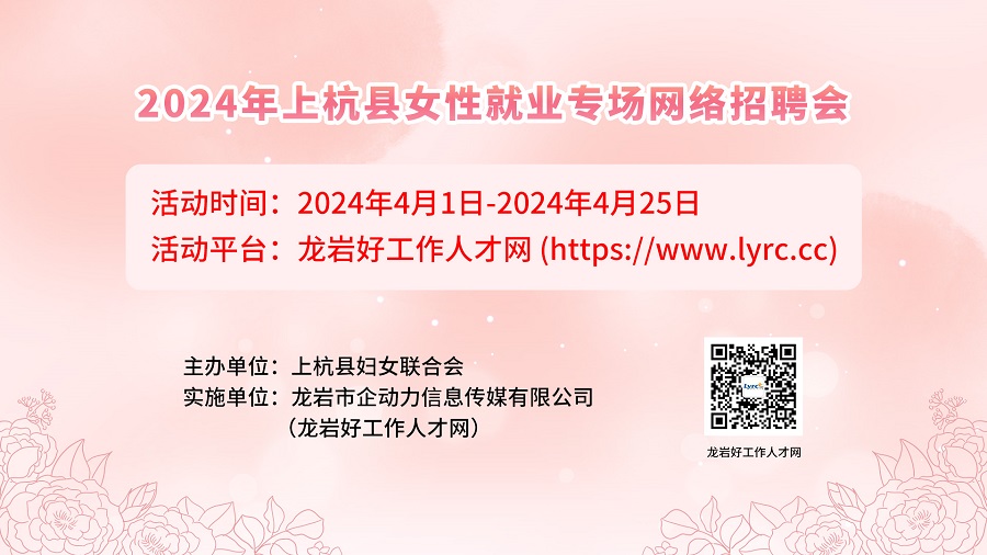 舉辦地點(diǎn):龍巖好工作人才網(wǎng)(www.onlinepeopleservices.com)網(wǎng)絡(luò)招聘專欄