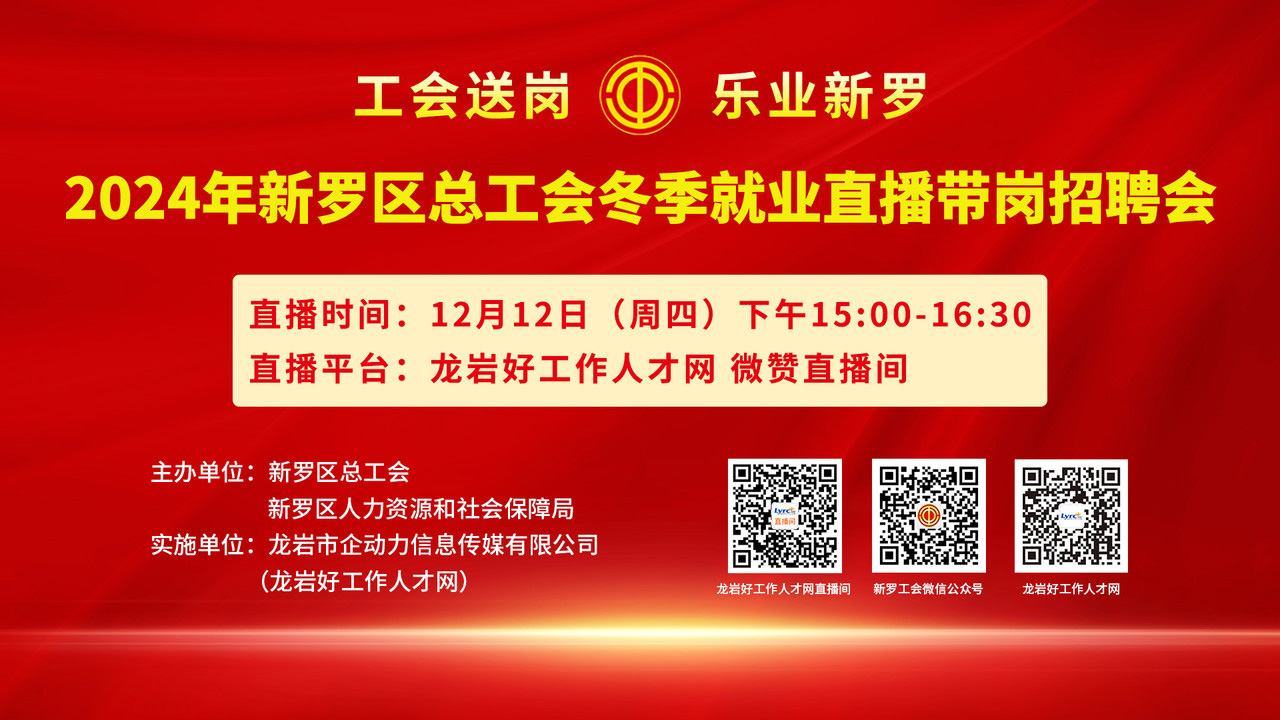 舉辦單位:新羅區(qū)總工會(huì) 新羅區(qū)人力資源和社會(huì)保障局