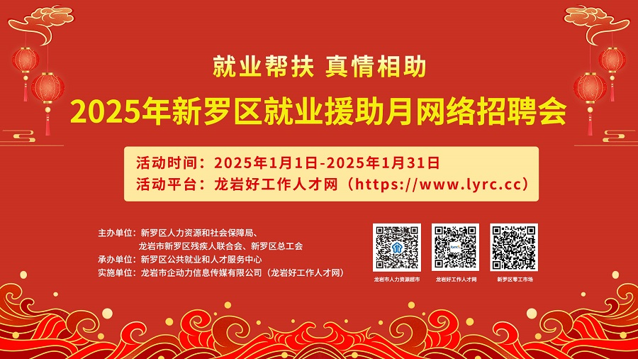 舉辦單位:龍巖市新羅區(qū)人力資源和社會(huì)保障局 新羅區(qū)總工會(huì) 龍巖市新羅區(qū)殘疾人聯(lián)合會(huì)