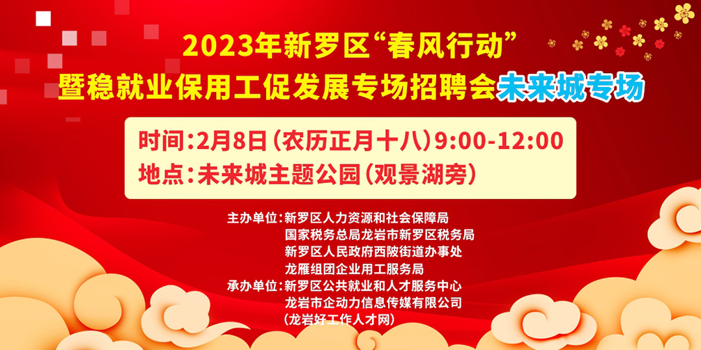 舉辦單位:新羅區(qū)人力資源和社會保障局、新羅區(qū)人民政府西陂街道辦事處、龍雁組團(tuán)企業(yè)用工服務(wù)局