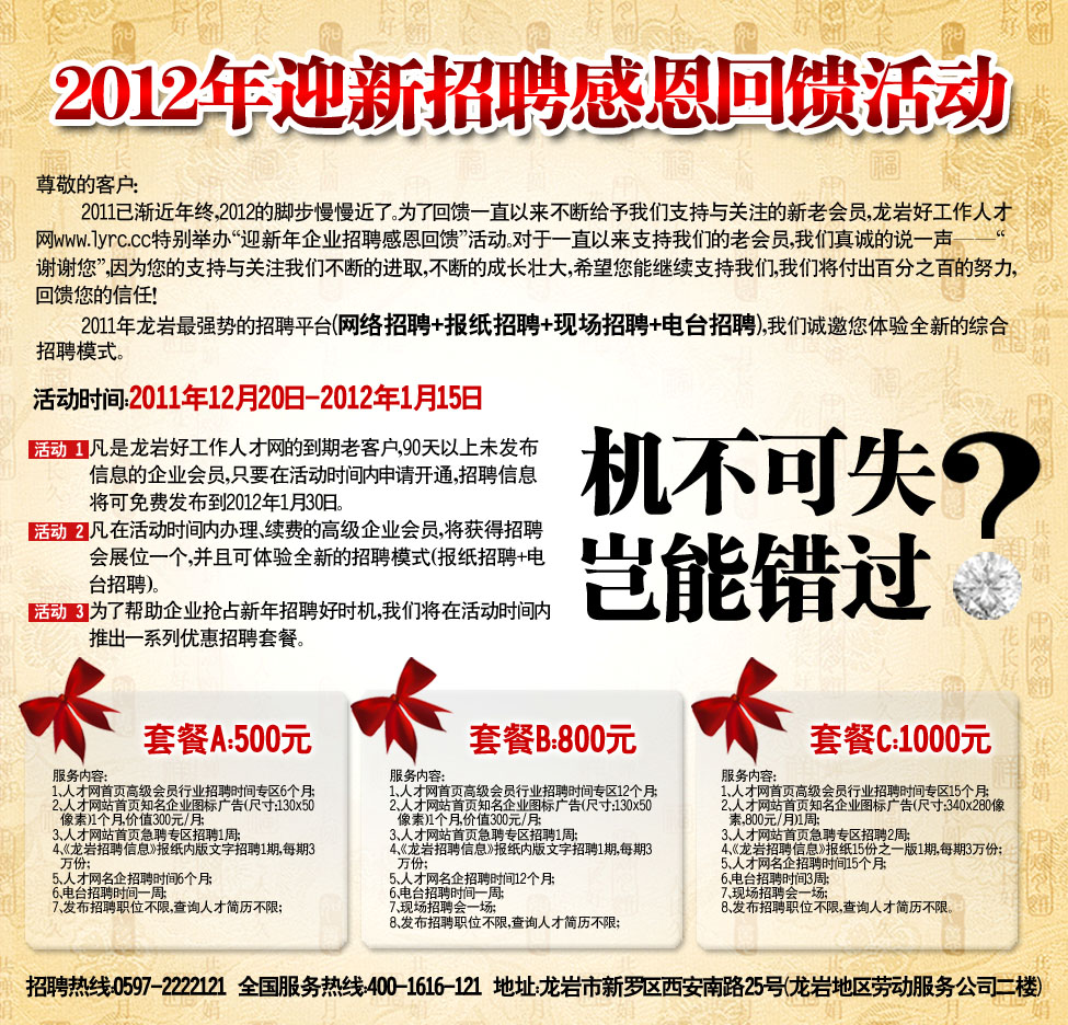 上一篇: 2012年龍巖市"春風(fēng)行動”招聘專刊火熱招商中