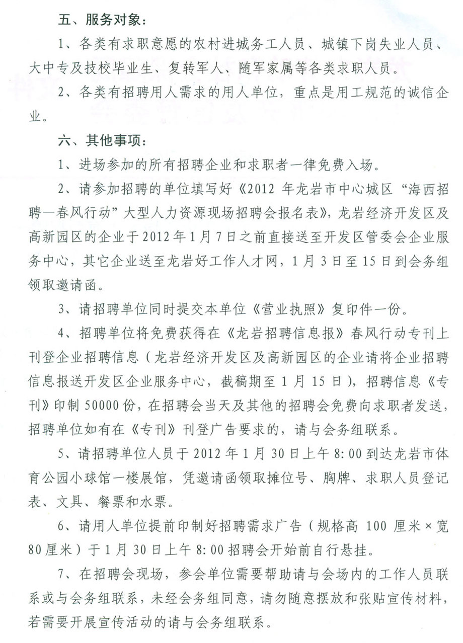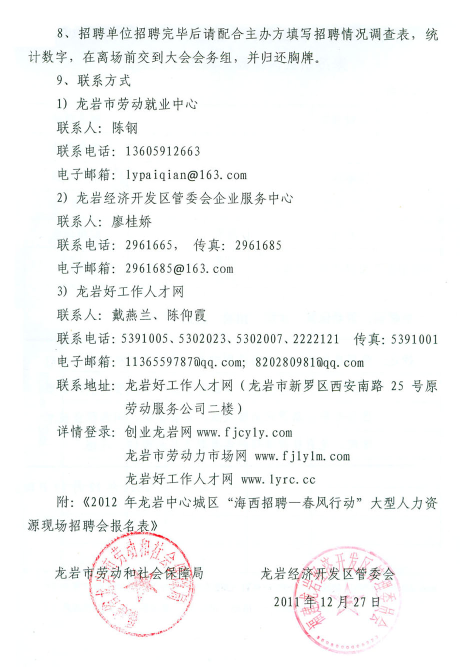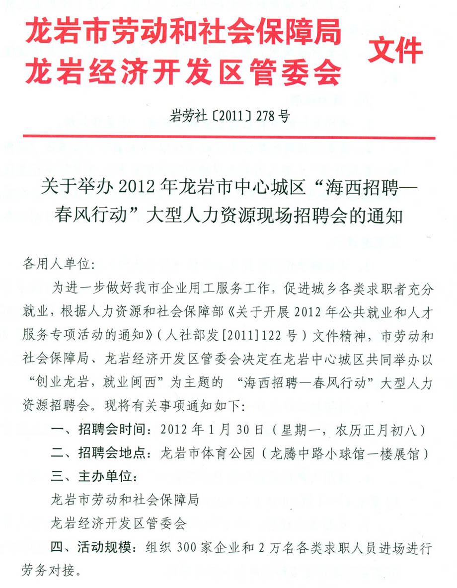 2012年龍巖市中心城區(qū)“海西招聘—春風(fēng)行動(dòng)”大型人力資源現(xiàn)場(chǎng)招聘會(huì)報(bào)名表下載