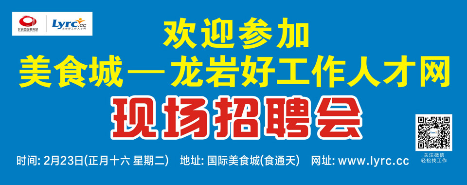 歡迎參加正月十六龍巖國(guó)際美食城-龍巖好工作人才網(wǎng)春季大型招聘會(huì)