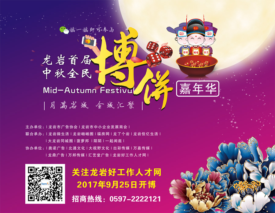 來(lái)加入龍巖首屆中秋全民博餅嘉年華吧!