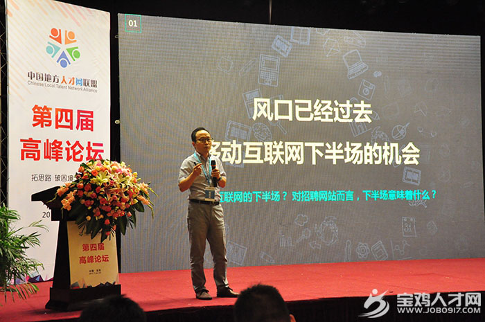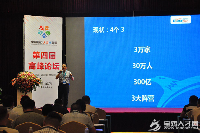 2017年7月24日上午,由寶雞市人社局和渭濱區(qū)人社局指導(dǎo),中國地方人才網(wǎng)聯(lián)盟主辦,寶雞人才網(wǎng)(www.job0917.com)承辦,渭濱區(qū)互聯(lián)網(wǎng)產(chǎn)業(yè)發(fā)展服務(wù)中心、陜西匯才信息科技有限公司黨支部協(xié)辦的第四屆中國地方人才網(wǎng)聯(lián)盟高峰論壇在寶雞城際酒店城際廳勝利召開。