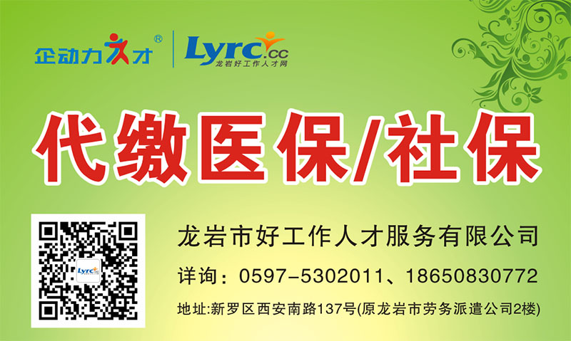 代辦地址:龍巖市新羅區(qū)西安南路137號(原龍巖市勞務(wù)派遣公司2樓)