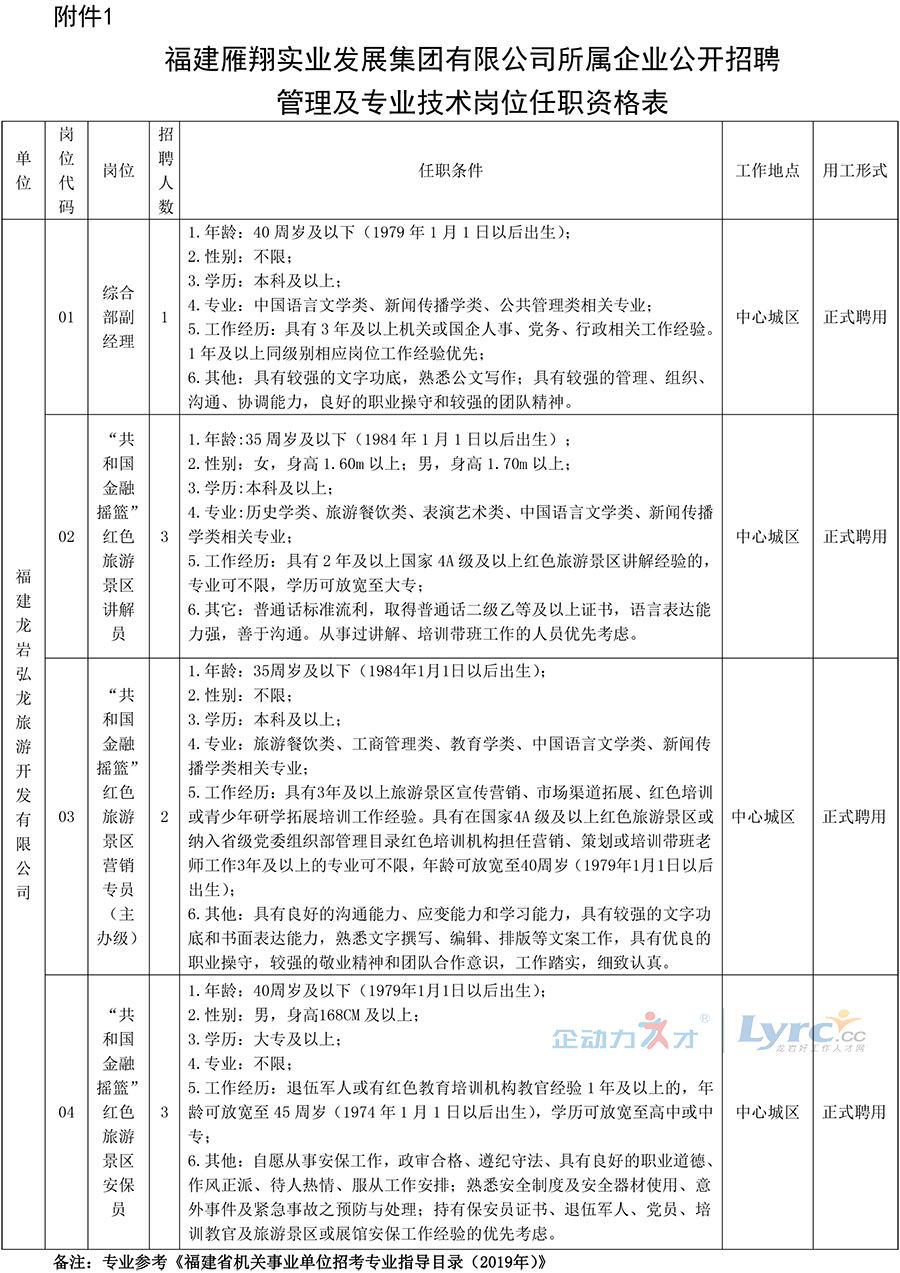 附件:1.福建雁翔實(shí)業(yè)發(fā)展集團(tuán)有限公司所屬企業(yè)公開(kāi)招聘管理及專業(yè)技術(shù)崗位任職資格表(點(diǎn)擊下載)