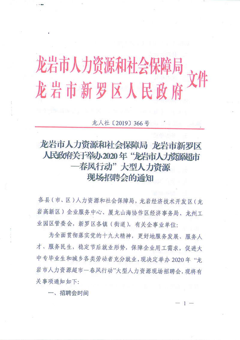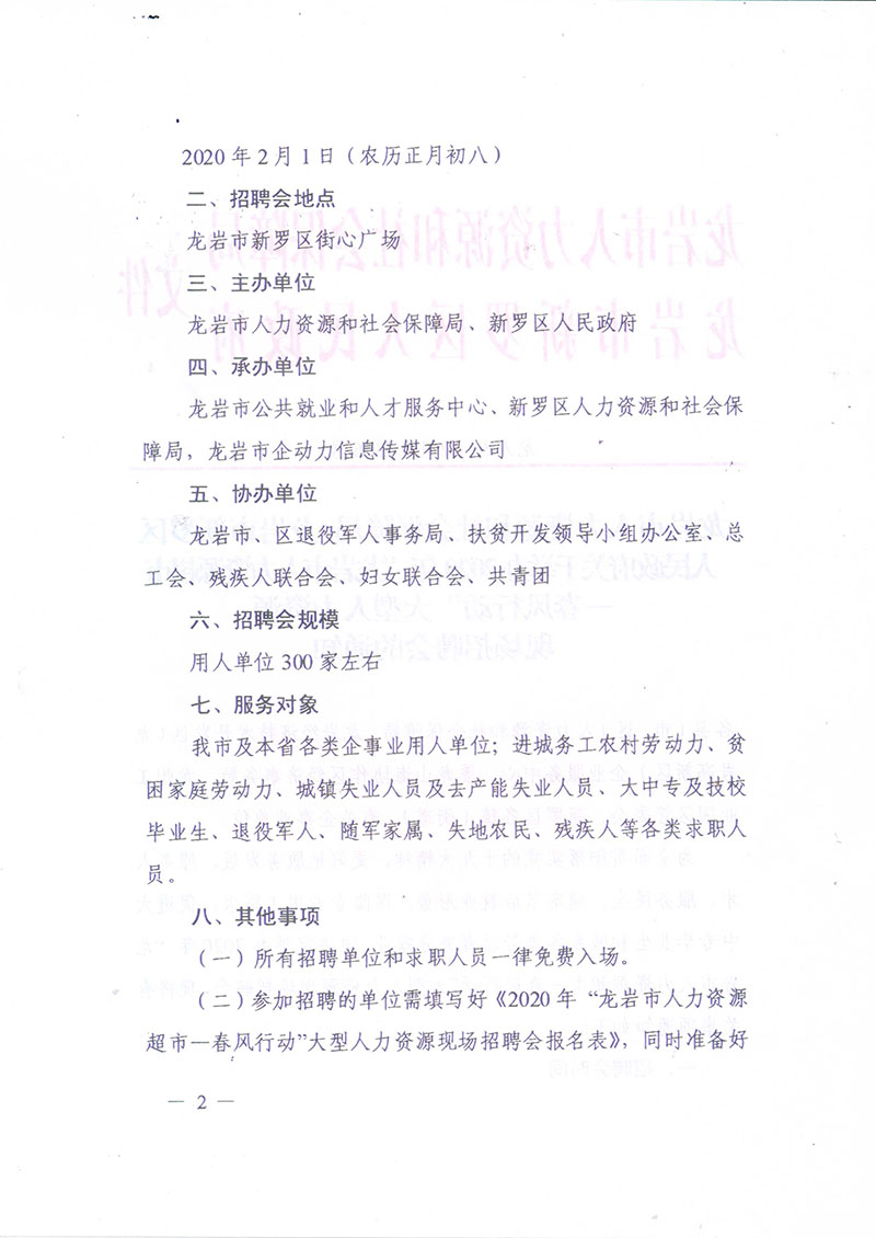 關(guān)于舉辦2020年“龍巖市人力資源超市—春風(fēng)行動(dòng)”