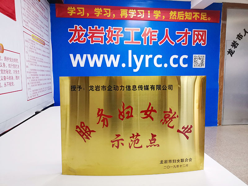 龍巖市企動(dòng)力信息傳媒有限公司是龍巖市婦聯(lián)確定的第一家“服務(wù)婦女就業(yè)示范點(diǎn)”單位,我司將依托企動(dòng)力好工作人才網(wǎng)線上線下平臺(tái),為龍巖市更多的婦女就業(yè)提供平臺(tái),為社會(huì)貢獻(xiàn)更多的力量。在授牌活動(dòng)中,龍巖市婦聯(lián)對(duì)我司響應(yīng)脫貧攻堅(jiān)在全市范圍內(nèi)促進(jìn)婦女就業(yè)、幫助困難婦女就業(yè)與創(chuàng)業(yè)方面的突出貢獻(xiàn)給予了高度評(píng)價(jià),對(duì)我司的發(fā)展規(guī)模、規(guī)劃大加贊賞,同時(shí)要求我司切實(shí)增強(qiáng)婦女就業(yè)工作的責(zé)任感和使命感,為促進(jìn)婦女增收創(chuàng)富做出貢獻(xiàn)!