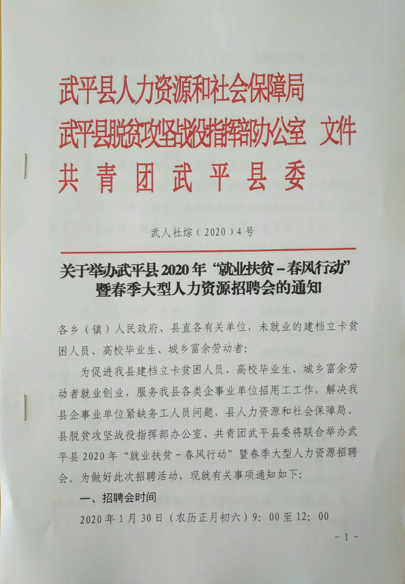 關于舉辦武平縣2020年“就業(yè)扶貧-春風行動” 暨春季大型人力資源招聘會的通知
