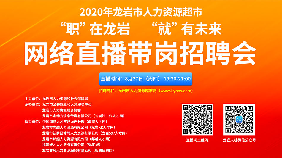 龍巖市人力資源超市2020年“職”在龍巖,“就”有未來 網(wǎng)絡直播帶崗招聘會公告