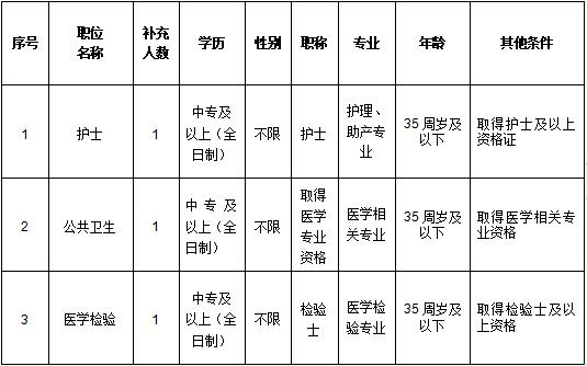 本次公開招聘非在編人員3名,具體的招聘職位、招聘人數(shù)及職位資格條件等,詳見《龍巖市新羅區(qū)雁石中心衛(wèi)生院公開招聘非在編人員職位表》(見附件1)。