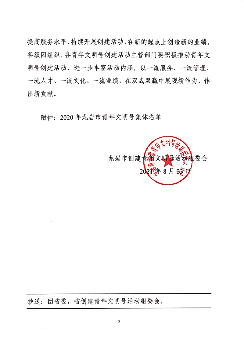 近日,從龍巖市創(chuàng)建青年文明號活動(dòng)組委會下發(fā)的《關(guān)于認(rèn)定2020年度市級青年文明號的決定》獲悉,龍巖市企動(dòng)力信息傳媒有限公司(龍巖好工作人才網(wǎng))榮獲2021—2023年度龍巖市級“青年文明號”榮譽(yù)稱號。