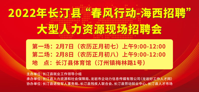 關(guān)于舉辦2022年長汀縣“春風(fēng)行動(dòng)-海西招聘”