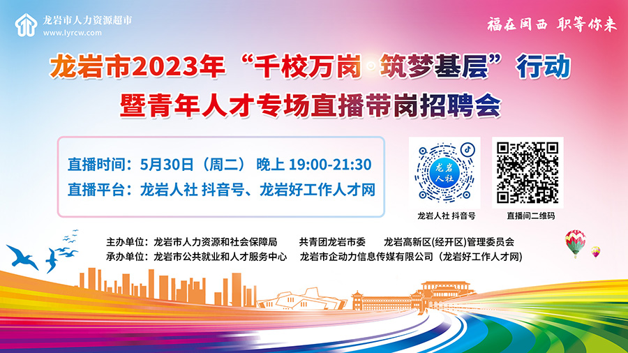 【直播回放】龍巖市2023年“千校萬崗·筑夢基層”行動暨青年人才專場直播帶崗招聘會