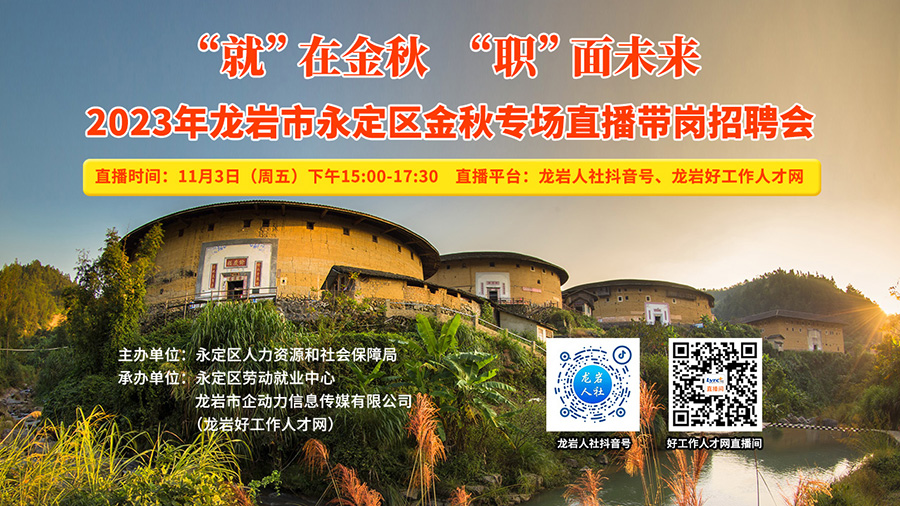【直播回放】2023年龍巖市永定區(qū)金秋專場直播帶崗招聘會(huì)