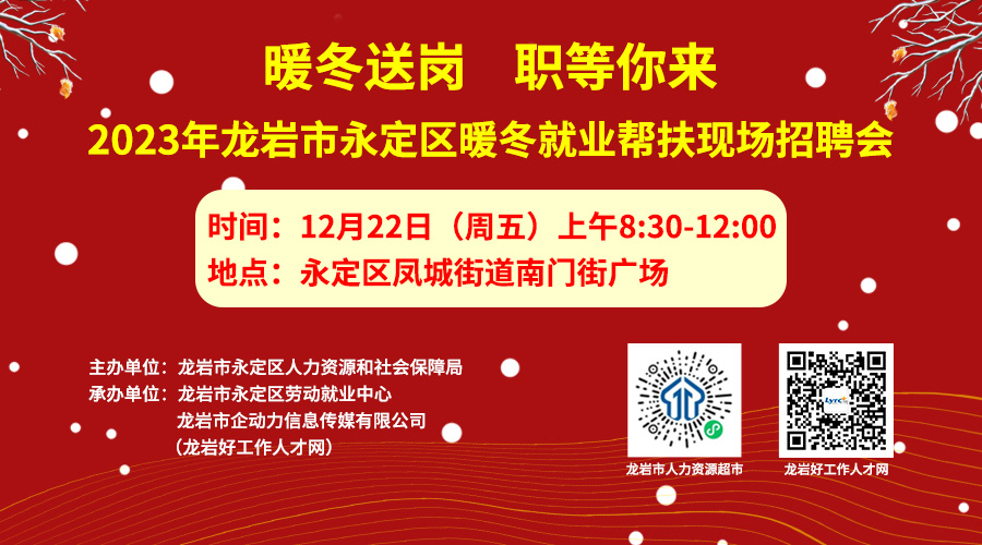 【12月22日】2023年龍巖市永定區(qū)冬季現(xiàn)場招聘會