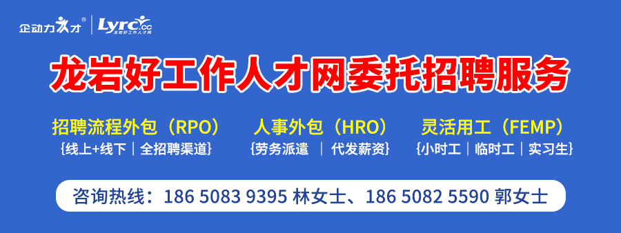 委托招聘說明:龍巖市好工作人才服務(wù)有限公司,通過龍巖好工作人才網(wǎng)(www.onlinepeopleservices.com)及專業(yè)的渠道廣泛搜尋所需人才,通過專業(yè)的團隊對人才進行面試篩選及考核評測后推薦給委托方,本招聘委托方均為正規(guī)單位/公司/協(xié)會,可放心投遞簡歷。