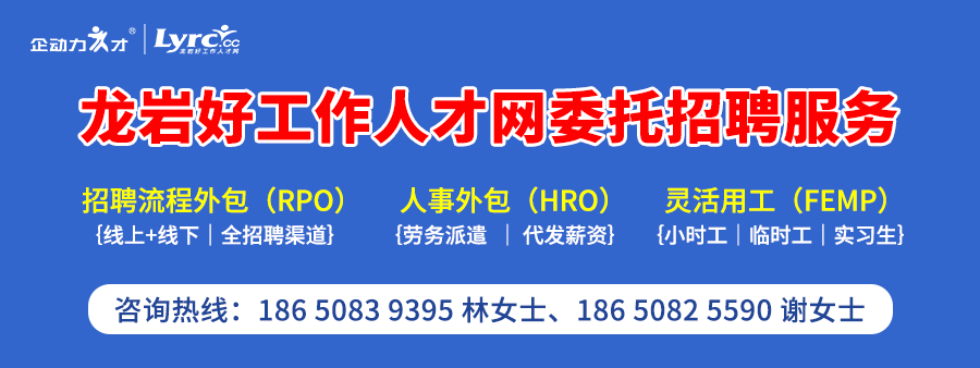 委托招聘說(shuō)明:龍巖市好工作人才服務(wù)有限公司,通過(guò)龍巖好工作人才網(wǎng)(www.onlinepeopleservices.com)及專(zhuān)業(yè)的渠道廣泛搜尋所需人才,通過(guò)專(zhuān)業(yè)的團(tuán)隊(duì)對(duì)人才進(jìn)行面試篩選及考核評(píng)測(cè)后推薦給委托方,本招聘委托方均為正規(guī)單位/公司/協(xié)會(huì),可放心投遞簡(jiǎn)歷。