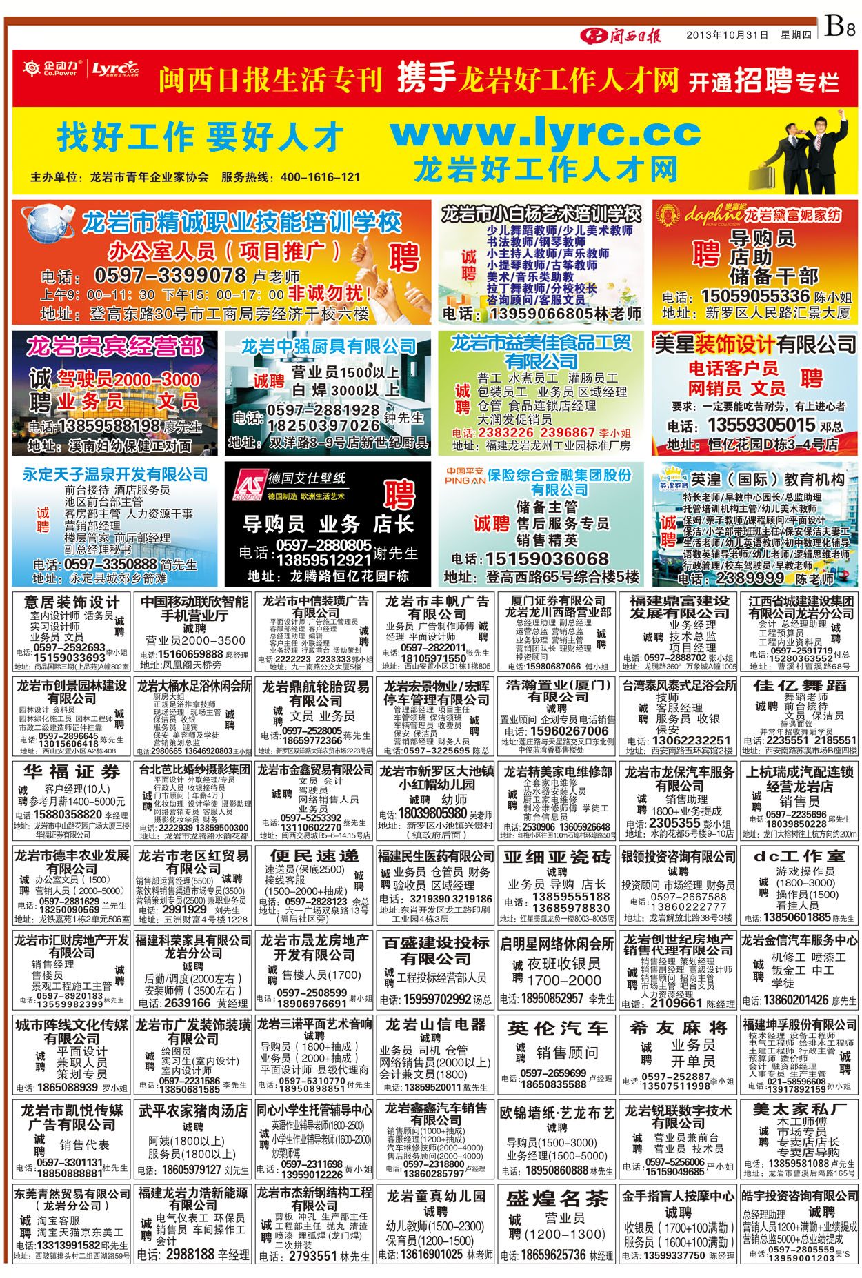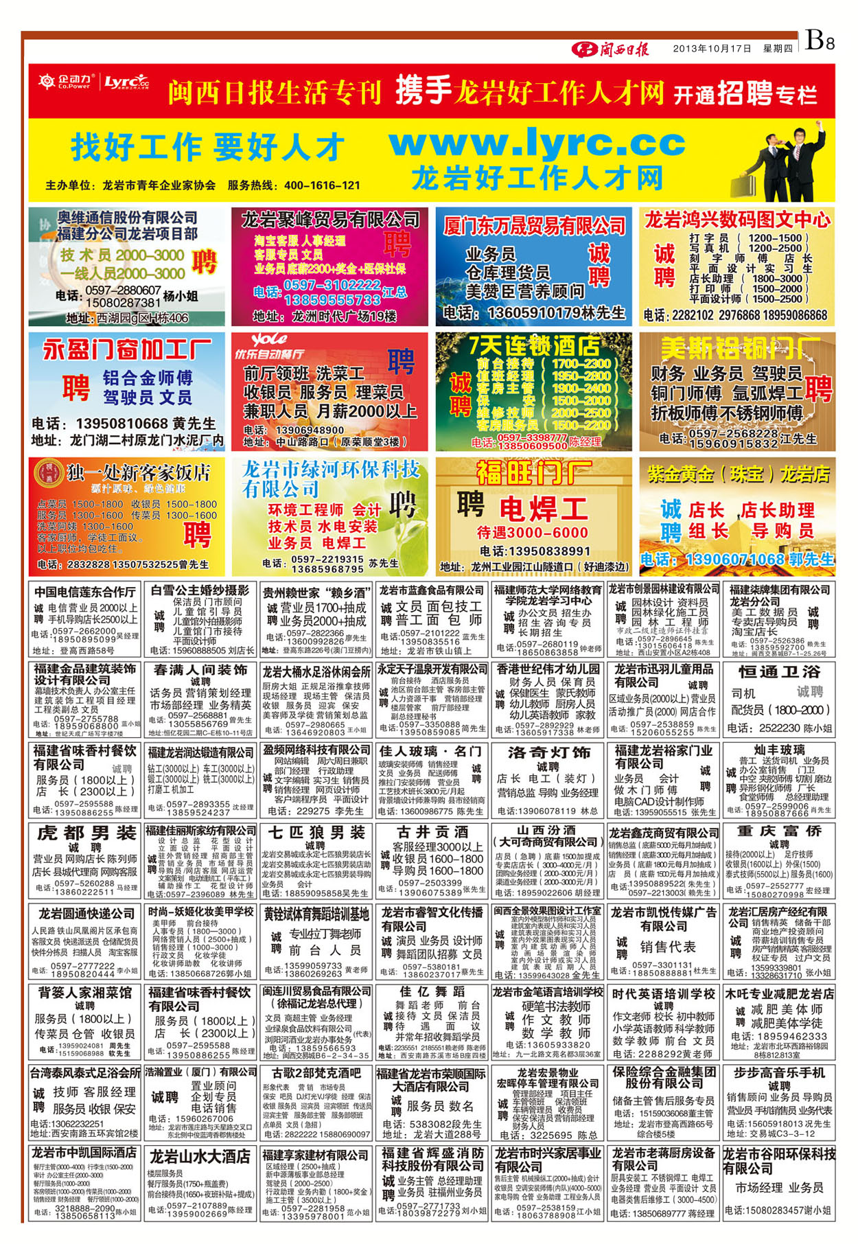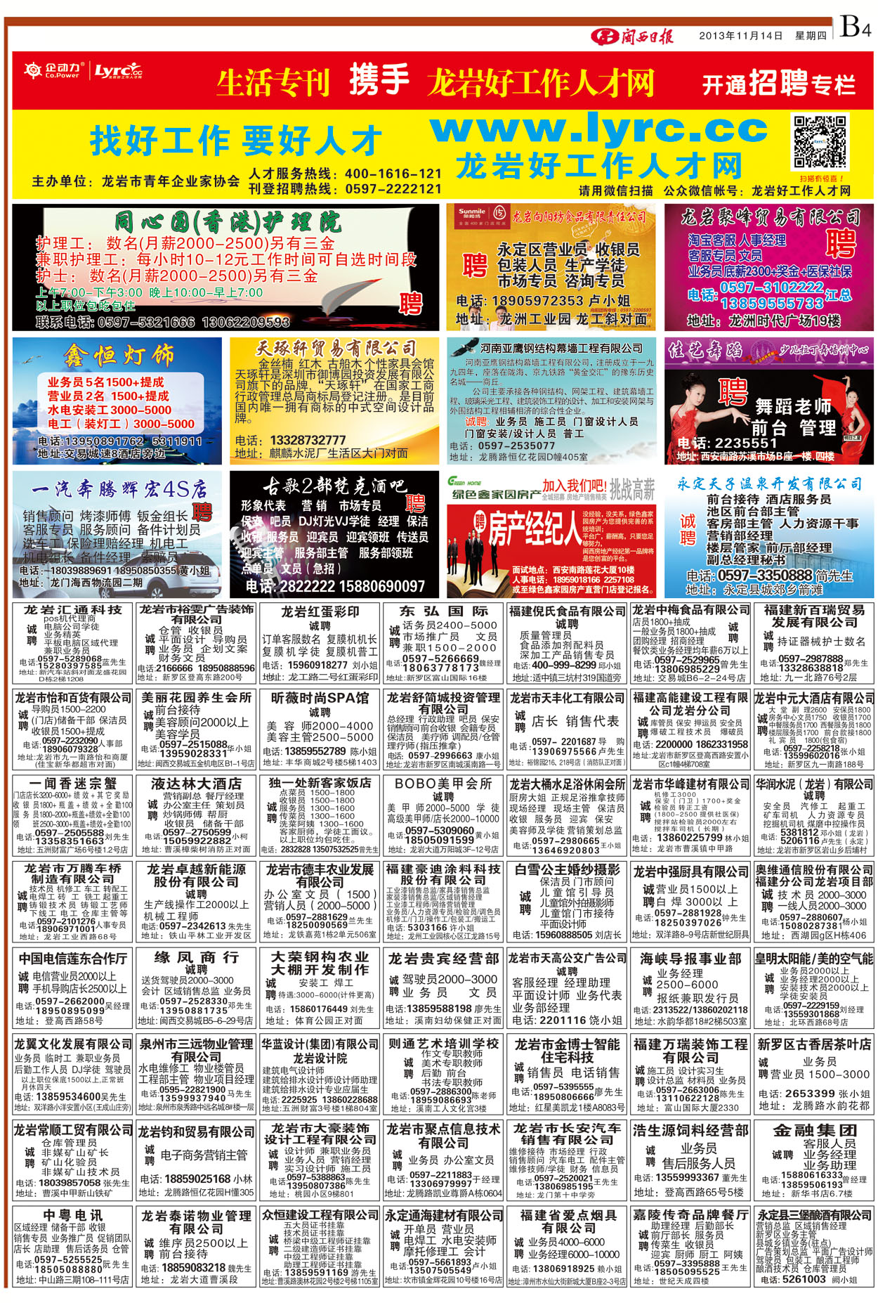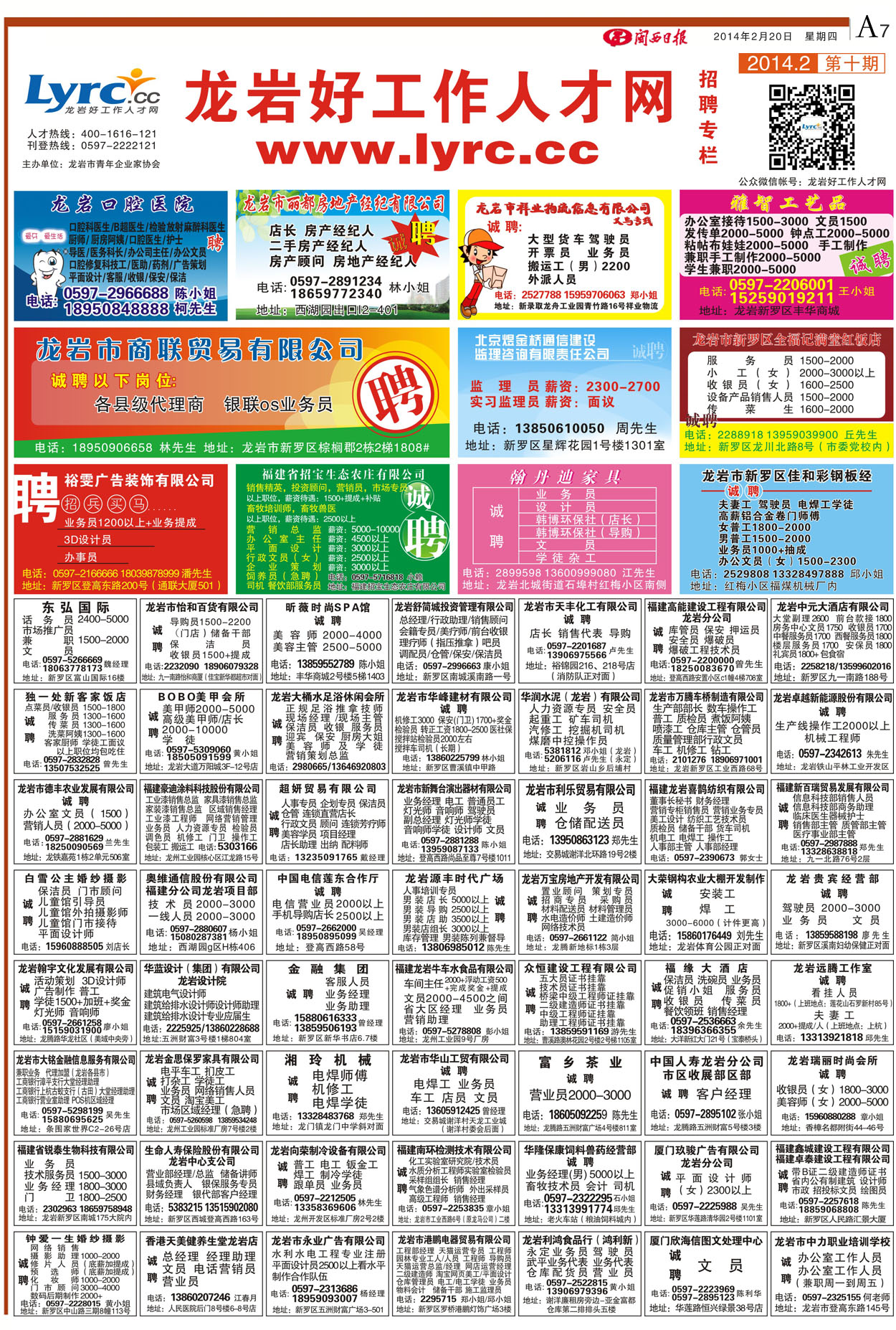 服務(wù)熱線:0597-2222121 全國人才服務(wù)熱線:400-1616-121 客服QQ: 企業(yè)交流群:148464179 信息監(jiān)督員:黃麗萍 不良信息舉報(bào)熱線:0597-2222121